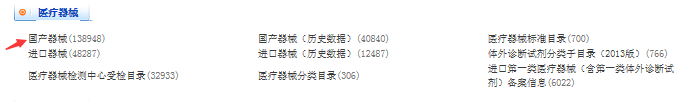 3、頁面分類中有醫(yī)療器械分類其中分為國產(chǎn)醫(yī)療器械和進(jìn)口醫(yī)療器械等,點(diǎn)擊進(jìn)入對應(yīng)的分類輸入信息即可查詢。