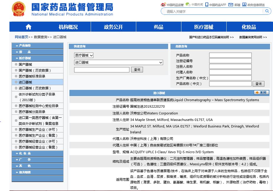 臨床質(zhì)譜又添新成員—沃特世TQ-S micro獲批醫(yī)療器械注冊(cè)證